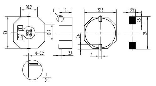 88dB/2.5kHz/9Vp-p square wave /10cm,40Vp-p,35±30%nF(At 1000Hz),12mA/2.5kHz/9Vp-p square wave,2.5± 0.5kHz,-20~+85℃,PPS/Black(Pin Material /Plated:Cu/Au),3.5g,More than 10N